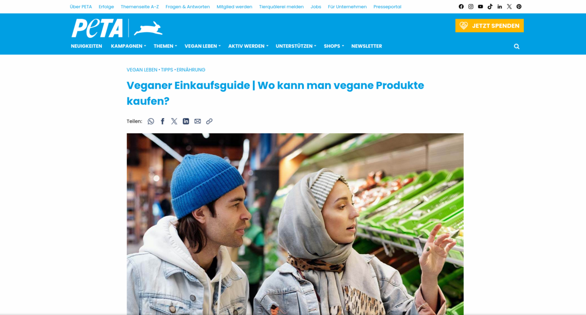 Eine großartige Orientierung für Einsteiger: Der Einkaufsguide von Peta. Auf dieser Seite findest du eine riesen Auswahl an veganen Produkten die du im Supermarkt erwerben kannst. Darunter viele Produkte, die auf den ersten Blick nicht als vegan erkenntlich sind (beispielsweise, weil sie kein entsprechendes Vegan-Label haben). So erhälst du bei der Umstellung eine Möglichkeit dich zu informieren, welche Produkte rein pflanzlich sind und du nach wie vor verwenden könntest.