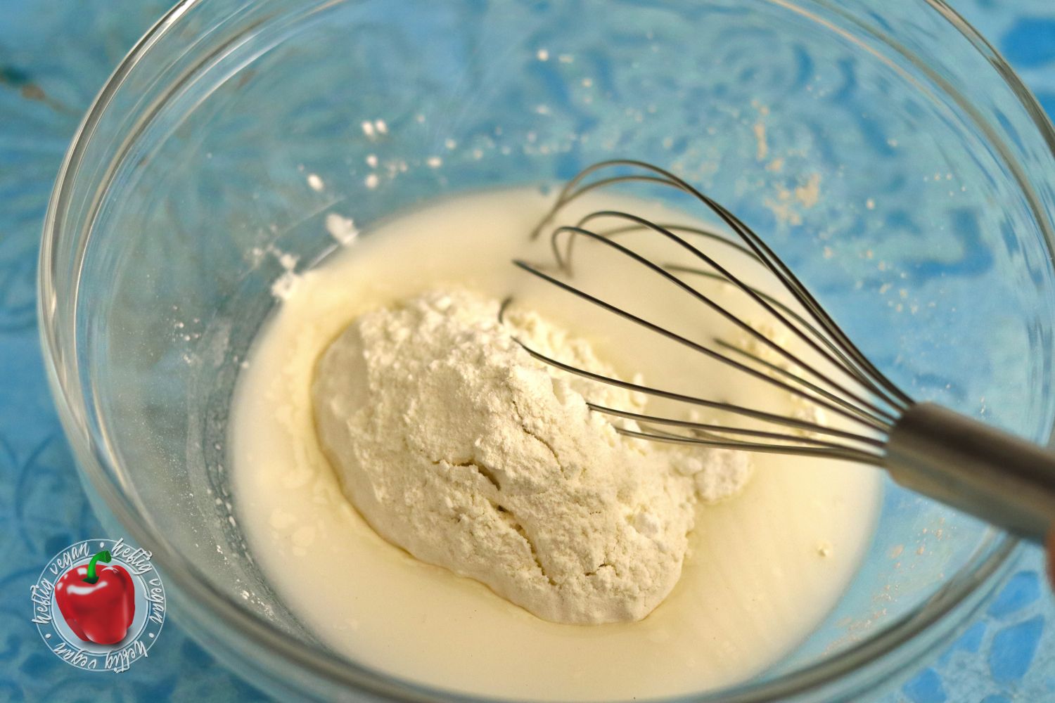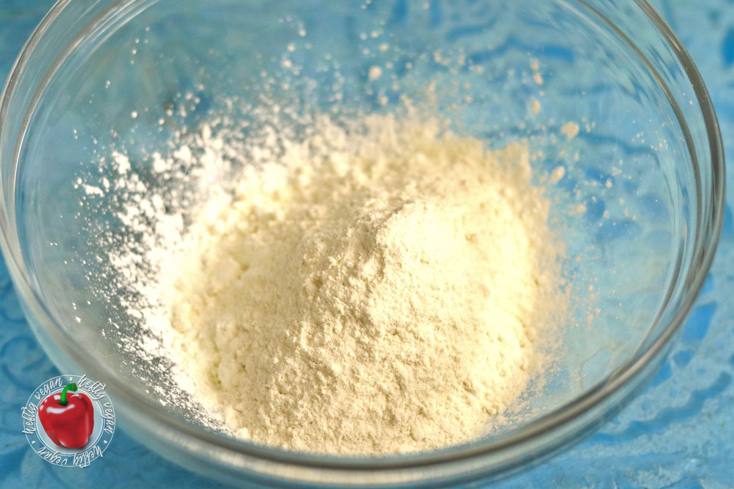 - 50 g Weizenmehl¹ (Typ 405) oder Dinkelmehl¹ (Typ 630)100 g Speisestärke¹½ TL SalzMehl und Speisestärke abwiegen und in eine Schüssel geben. Salz hinzufügen und mischen.
