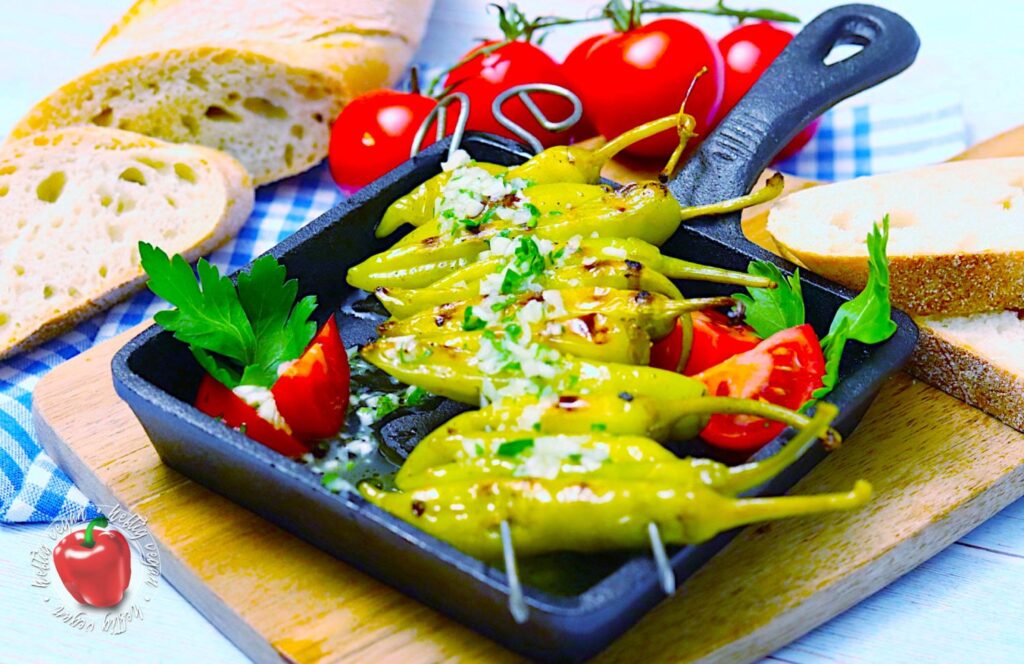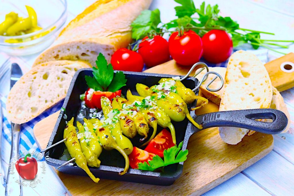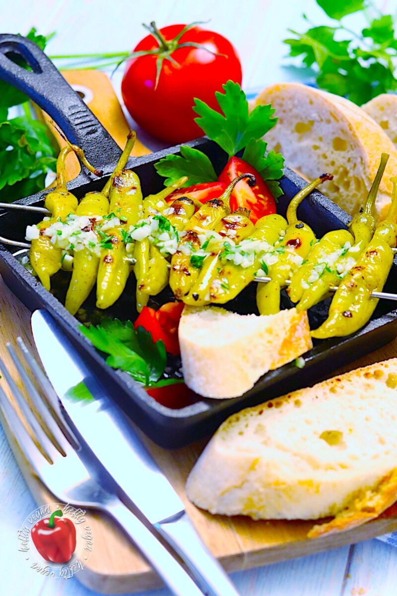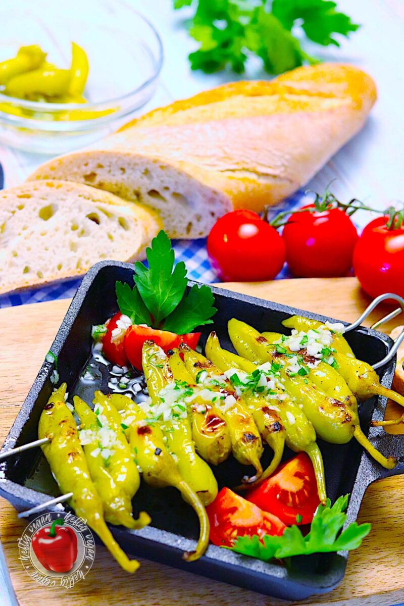 Ein paar bekannte Beispiele für Vorspeisen, die zumindest vegetarischer Natur sind, stellen unter anderem Tsatsiki, Fava, Dakos oder Skordalia dar. Zumindest auf den Speisekarten griechischer Restaurants in Deutschland zu finden sind eben auch jene Griechische Peperoni am Grillspieß, in Knoblauch und Olivenöl, meist mit Weißbrot gereicht.