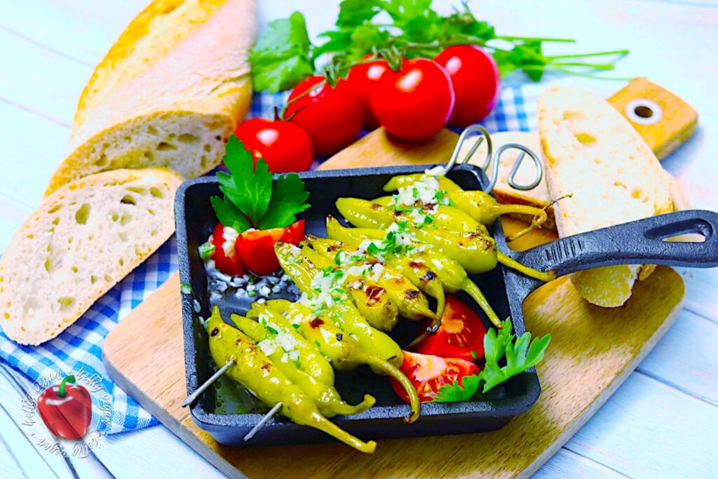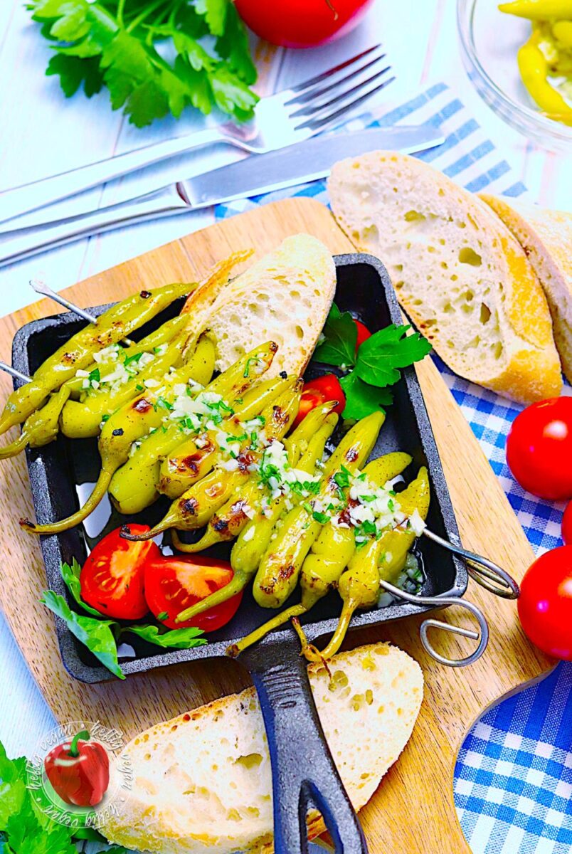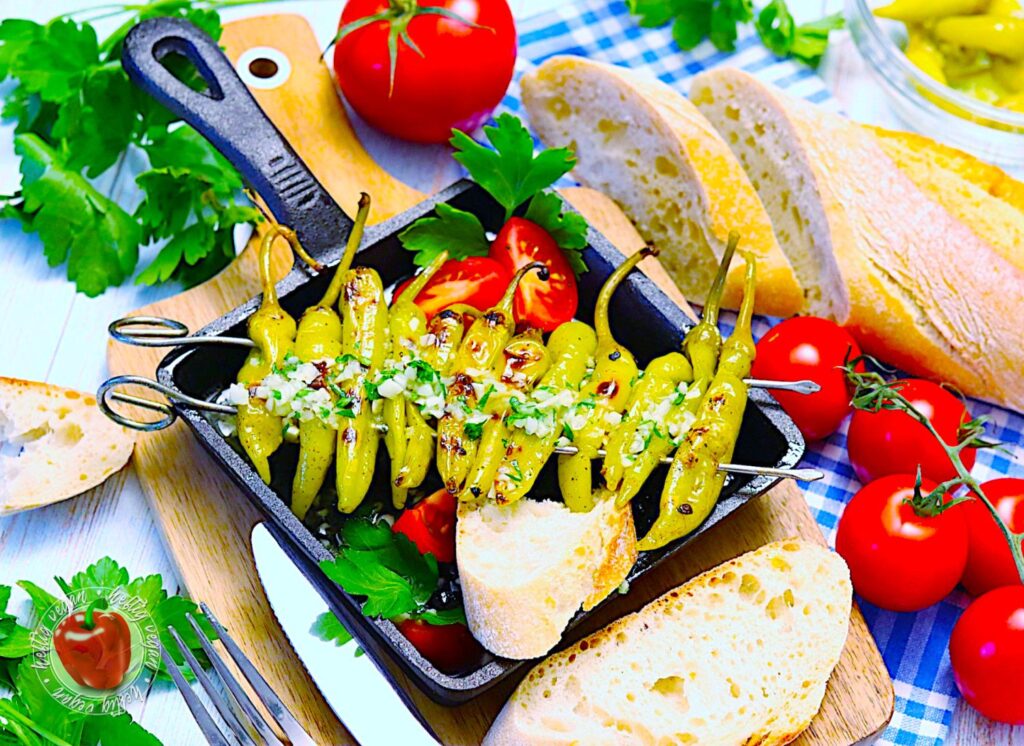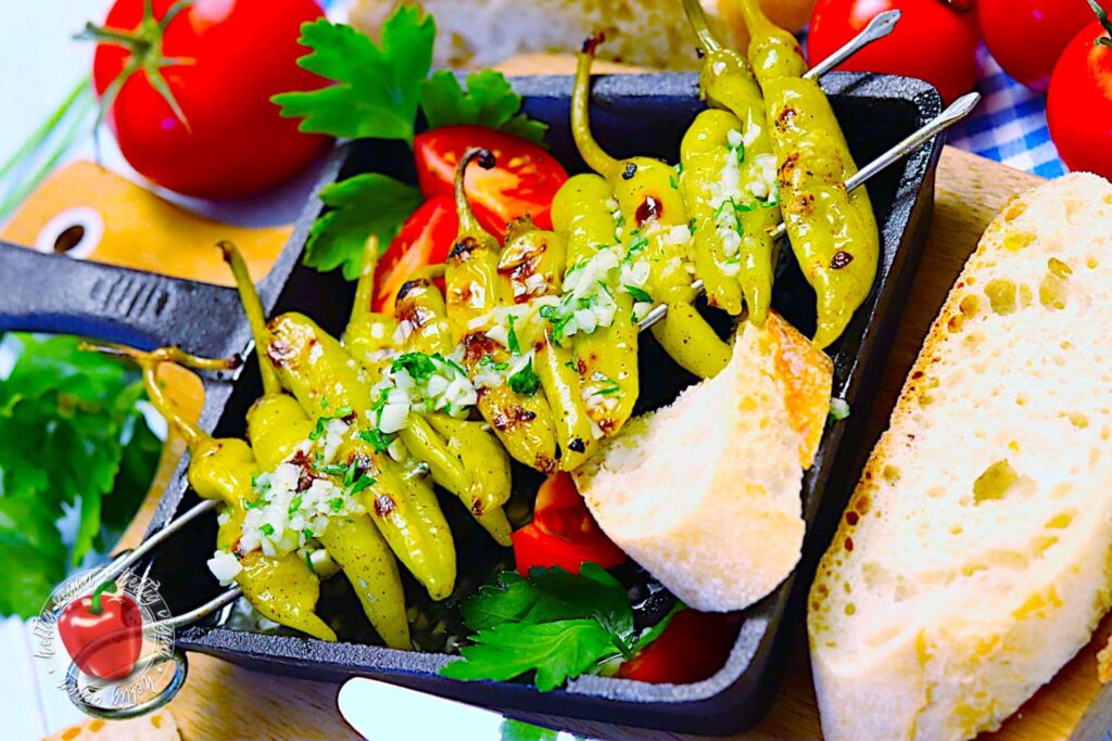 Griechische Peperoni am Grillspieß