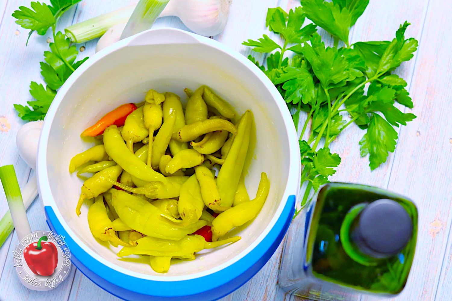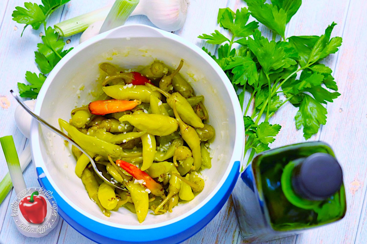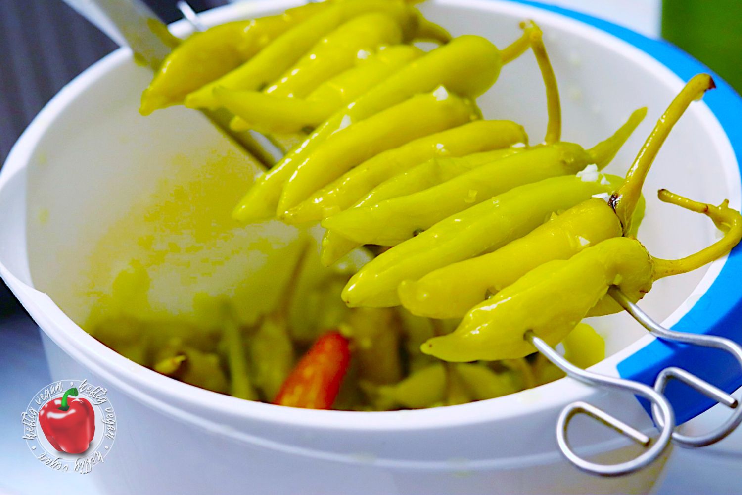 In meinem Rezept habe ich auf ein ungewürztes Produkt zurückgegriffen, dessen Peperoni in Salzlake eingelegt waren. Da ich mit diesem Rezept eine Marinade mitliefere, ist es aus meiner Sicht auch empfehlenswert kein vorgewürztes Produkt oder fertig eingelegtes Produkt zu verwenden. Ausnahmen bestätigen die Regel. Möchtest du keine eigene Marinade verwenden, dann ist es natürlich sinnvoll auf fertig marinierte Peperoni zurückzugreifen. Schau doch dafür mal an der griechischen oder türkischen Feinkosttheke deines Vertrauens vorbei.