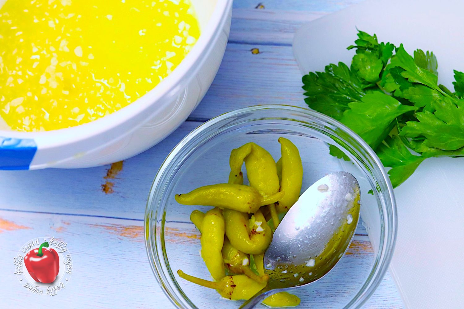 Die Peperoni marinieren