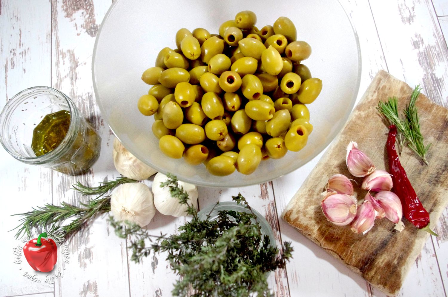 - Chili fein hacken und zusammen mit dem Trockengewürz ebenfalls zu den Oliven geben.