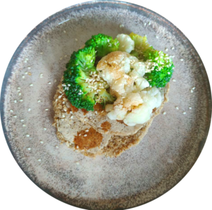 | Die Haferflocken mit dem heißen Wasser übergießen und ca. 10 Minuten quellen lassen. Anschließend mit Banane und gewaschenen Himbeeren belegen. Mit Zimt bestreuen. | Leinsamen malen, mit Haferflocken mischen. Mit etwas Wasser mischen bis ein Brei entsteht. Zum Bratling formen. Bei 180 C im Ofen ca. 30 Minuten backen. Blumenkohlröschen und Tomate ohne Fett dünsten. Mit Brühe, Knoblauch und Garam Masala abschmecken und über den Bratling geben. | Die Haferflocken mit dem heißen Wasser übergießen und ca. 10 Minuten quellen lassen. In der Zwischenzeit Champignons und Lauch schneiden, ohne Fett braten und mit etwas Wasser lösen. Mit Knoblauch und Gemüsebrühe würzen und über das Porrdige geben. |