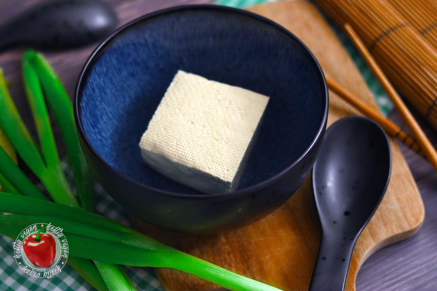 - 150 g Bio-Tofu¹, naturSchnittfesten Tofu aus der Verpackung entnehmen und kurz abtropfen.
