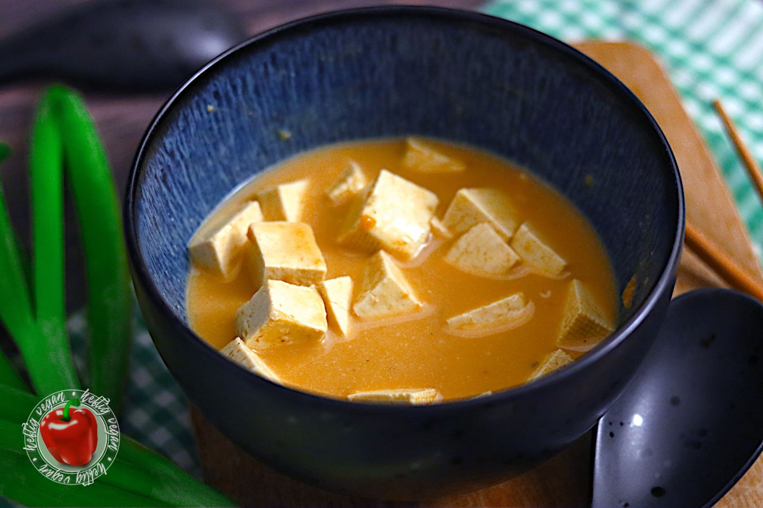 - 400 ml Wasser, kochend (zum Auffüllen)Die Suppenpaste zum Tofu geben. Zum Auflösen etwas Wasser hinzufügen und verrühren. Ist die Paste gelöst, kann die Schale mit kochendem Wasser aufgegossen werden.