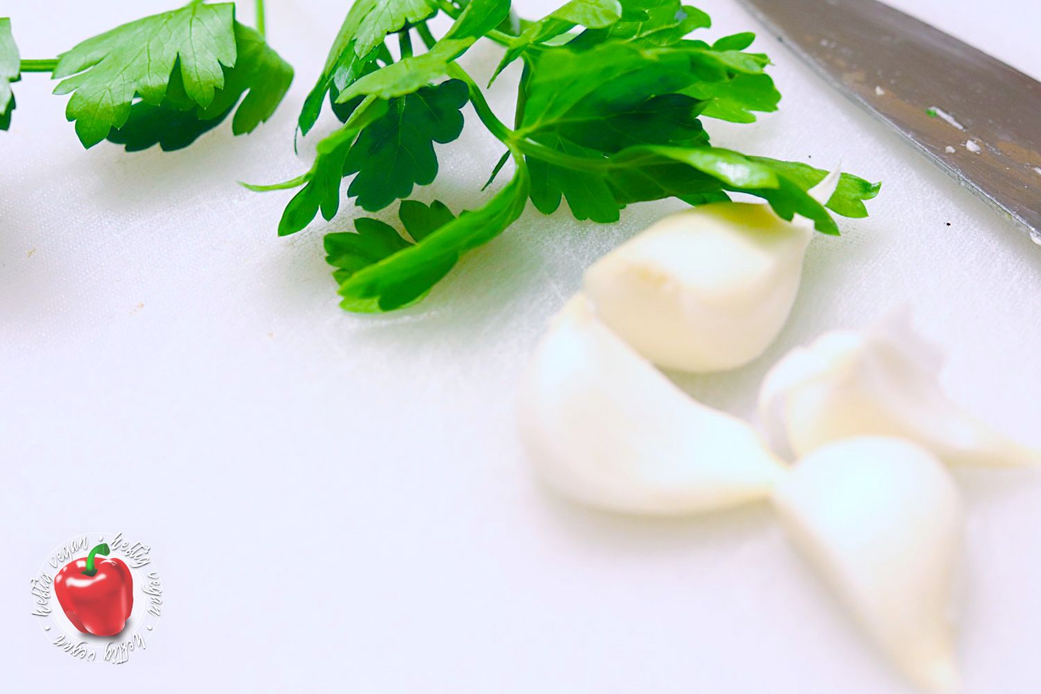 - 2 EL Knoblauch400 g Tomaten¹, gehackt2 EL Petersilie, frisch oder TK-PetersilieKnoblauch schälen und fein hacken. Petersilie waschen, trocken tupfen und jeweils ebenfalls fein hacken. Beiseite stellen.