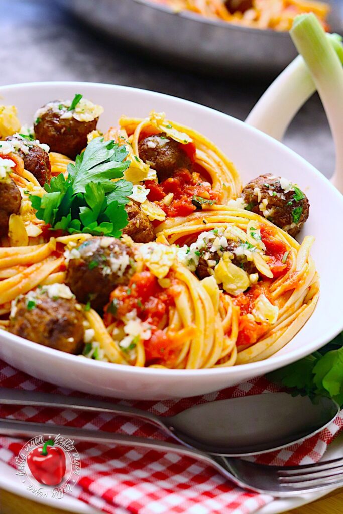 Linguine mit veganen Fleischbällchen