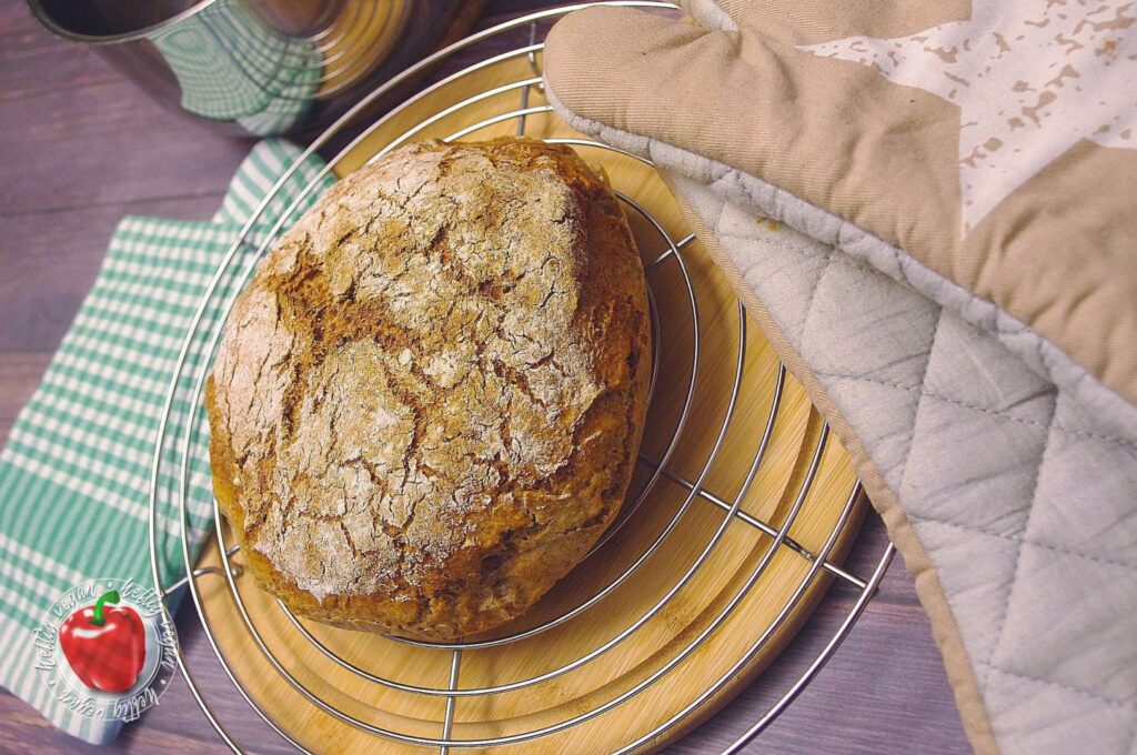 Um eine knusprige Kruste zu erhalten habe ich dem Teig enzymaktives Backmalz hinzugegeben. Dies dient der Hefe als schnell verfügbare und leicht zugängliche Nahrung. Darüber hinaus verbessert die Enzymaktivität die Konsistenz des Teigs. Er wird luftiger, geschmeidiger und stabiler bei Erschütterungen/Bewegungen. Wenn du dich also schon einmal gefragt hast, warum dein Brot nicht so luftig wird wie das vom Bäcker – hier könnte die Antwort hinter stecken.