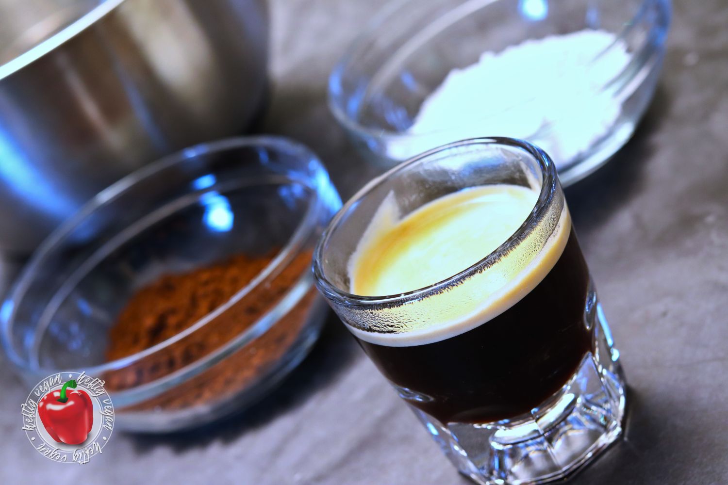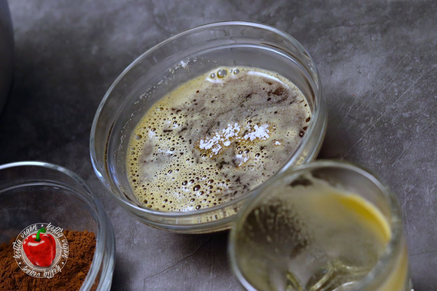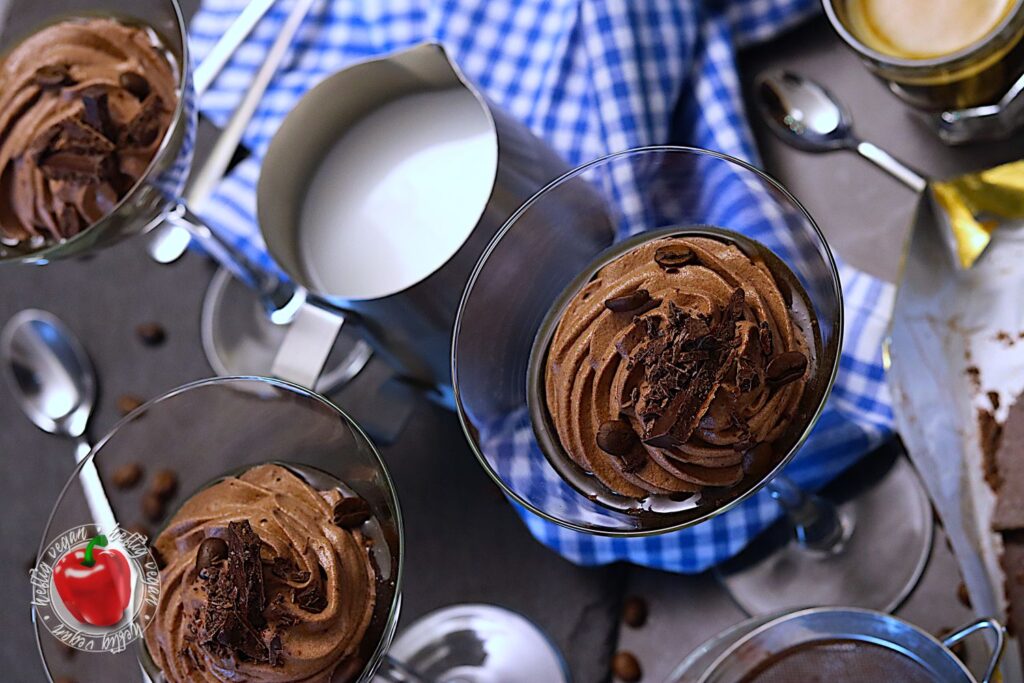 Vieeeel über Mokka, einem Moka und Espresso gesprochen. Aber was ist nun eigentlich mit der Mokkacreme? Nun, bei meiner schnellen Mokkacreme handelt es sich um ein Dessert auf Basis von Schlagcreme, die mit Kakao und Kaffee aromatisiert wird. Der vegane Sahneersatz wird mit Zucker aufgeschlagen und anschließend mit Kaffee und Kakao vermengt. Damit sich der Zucker besser löst, kann dieser auch im heißen, frischen Kaffee gelöst werden. Anschließend wird die Mischung gefestigt. Dies kann mit einem Sahnefest¹-Pulver oder einer Stärkemischung geschehen. Ich verwende hierzu das vegane Produkt San-Apart¹.