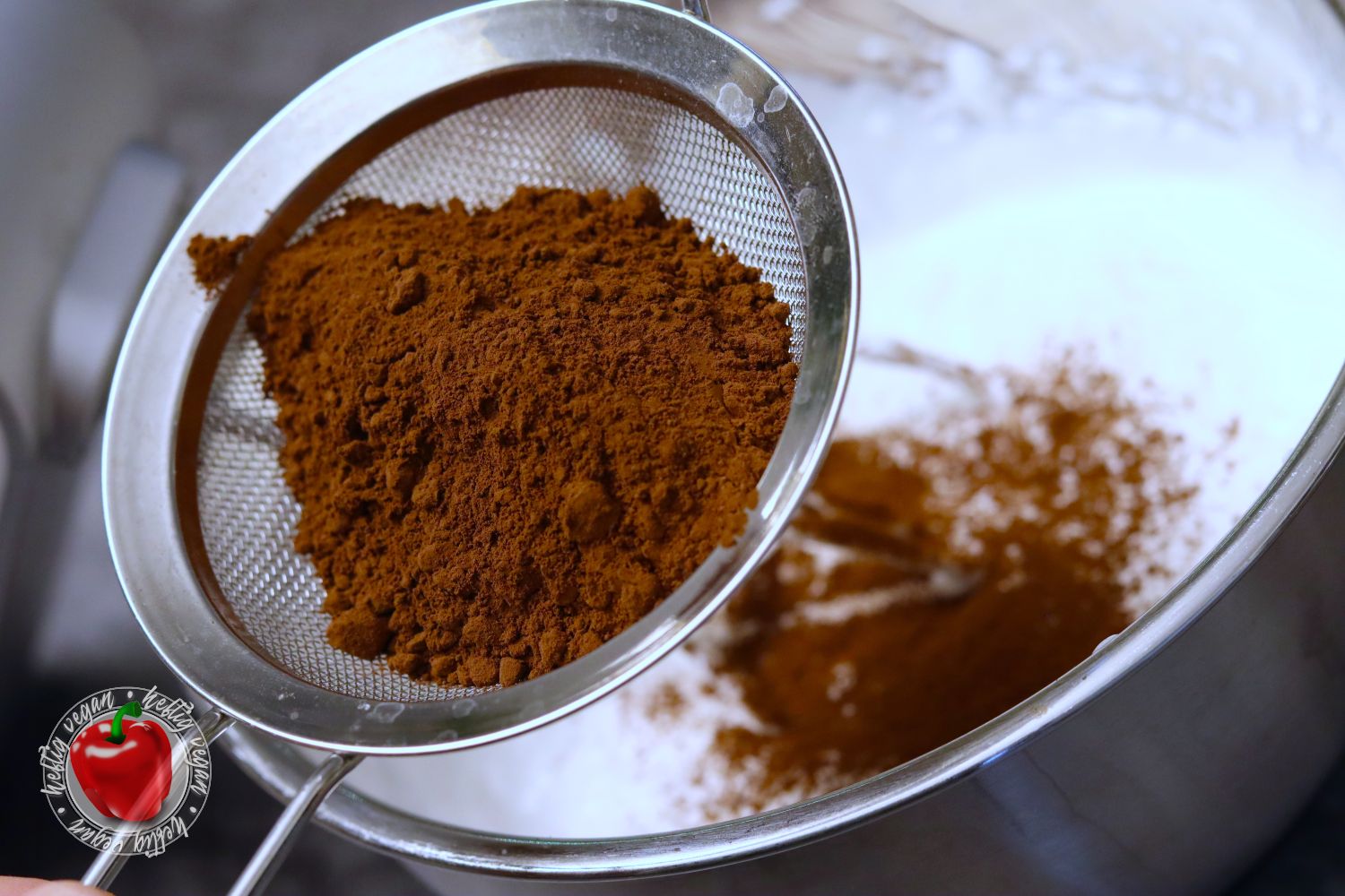 - 2 EL Backkakao¹, entöltBackkakao hinein sieben und vorsichtig unterheben.