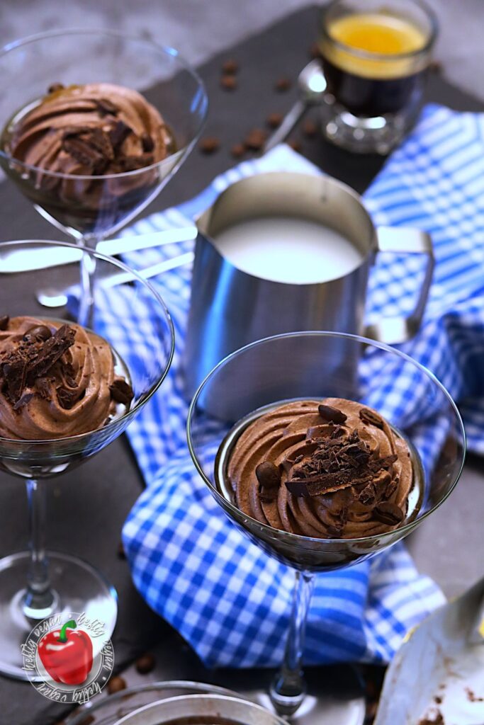 Warum allerdings in Deutschland der Irrglaube verbreitet ist, dass sich mit diesem Gerät ein Espresso zubereiten lässt, ist mir schleierhaft. Im Volksmund hat sich eben der Rufname „Espresso-Kocher“ eingebürgert. Wie dem auch sei: In meinem Rezept überlasse ich dir die Wahl, ob du mit einem Mokka, einem Moka oder einem Espresso arbeitest. Hauptsache, du lässt den Kaffeesatz schön aus dem Dessert und verwendest ein kräftiges, kurzes Kaffeeheißgetränk ;o)