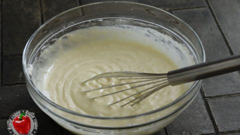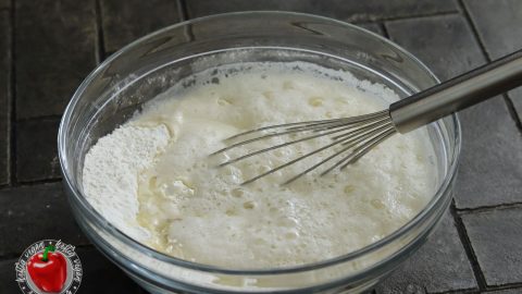 - 300 g Mineralwasser mit viel Sprudel125 g Rapsöl¹, Albaöl¹ oder Rapsöl¹, mit Buttergeschmack60 g Pflanzensahne (z. B. Alpro Soja Cooking¹)Öl und Pflanzensahne abmessen und hinzufügen. Mineralwasser hinzugießen und direkt kräfitg unterrühren. Achtung: Nicht zu lange Rühren, da sonst die Kohlensäure wieder entweicht.