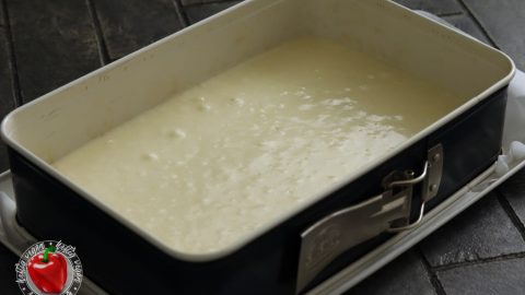 - Die Springform mit Backpapier ausgleiden. Die Ränder ggf. fetten. Die Hälfte des Teigs einfüllen.