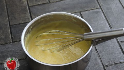 - Die zimmerwarme, vegane Butter nun mit einem Rührgerät unter die Vanillepuddingcreme schlagen und glattrühren.