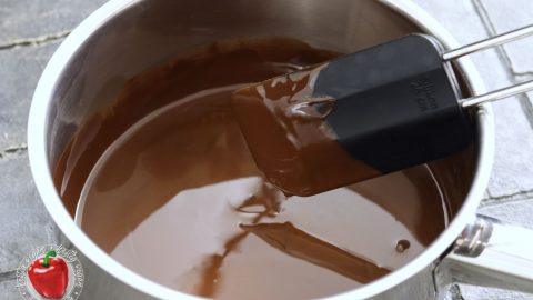 - 150 g Zartbitterkuvertüre¹2 EL Rapsöl¹, Albaöl¹ oder Rapsöl¹, mit ButtergeschmackNun in einem kleinen Topf Kuvertüre und Öl bei niedrigen Temperaturen gleichmäßig schmelzen.