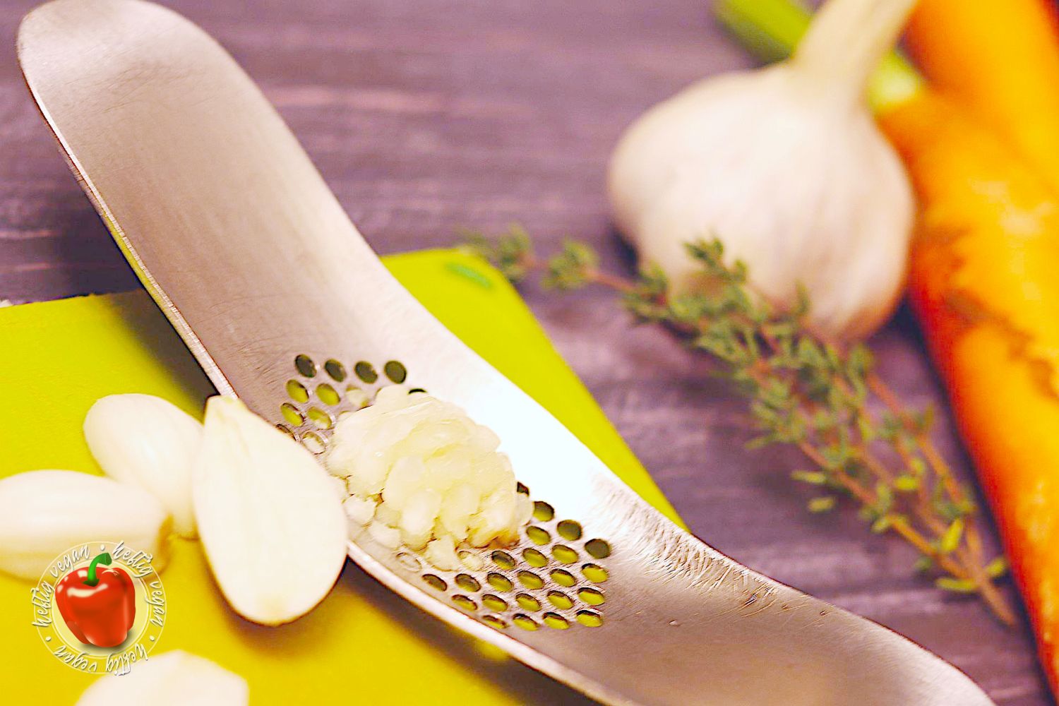 - 500 ml Tomaten¹, passiert3 Zehen Knoblauch, frischn. B. Kochwasser der KartoffelnKnoblauch schälen, pressen und hinzufügen. Mit passierten Tomaten ablöschen. Mit dem Kartoffel-Kochwasser solange auffüllen bis eine geschmeidige Sauce entstanden ist. Kartoffeln und Möhren abgießen und hinzufügen.
