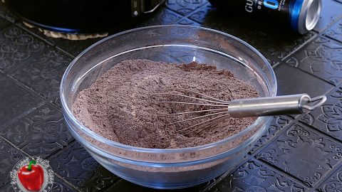 - 300 g Weizenmehl¹ (Typ 405) oder Dinkelmehl¹ (Typ 630)250 g Zucker¹,weiß75 g Backkakao¹, entölt2 Pkt. Weinsteinbackpulver¹2 Pkt. Vanillin¹1 TL Natron¹Mehl, Zucker und Kakao abwiegen und in eine Rührschüssel geben. Backpulver, Vanillin und Natron ergänzen.