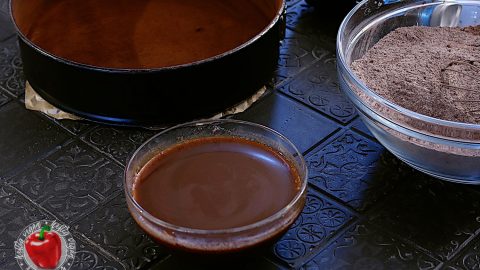 - n. B. etwas Backkakao¹ für die SpringformDie Springform leicht fetten und mit Kakao bestäuben. Ofen auf 175 °C Ober-/Unterhitze stellen. Den Teig in die Springform füllen und ca. 50 Minuten backen.
