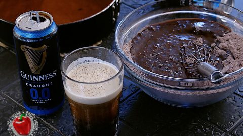 - 250 ml Guinness SchwarzbierDas Guinness abmessen. Zusammen mit der Buttermischung in die Rührschüssel geben. Alles kräftig durchmengen, bis keine Klümpchen mehr vorhanden sind.