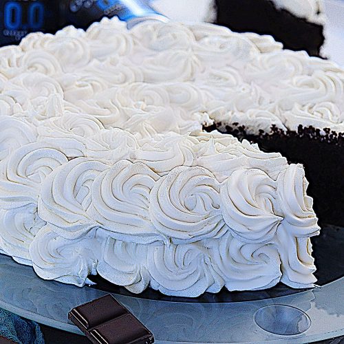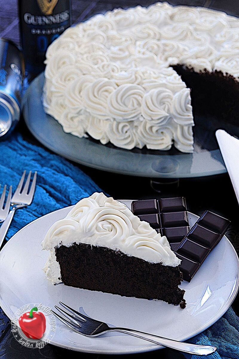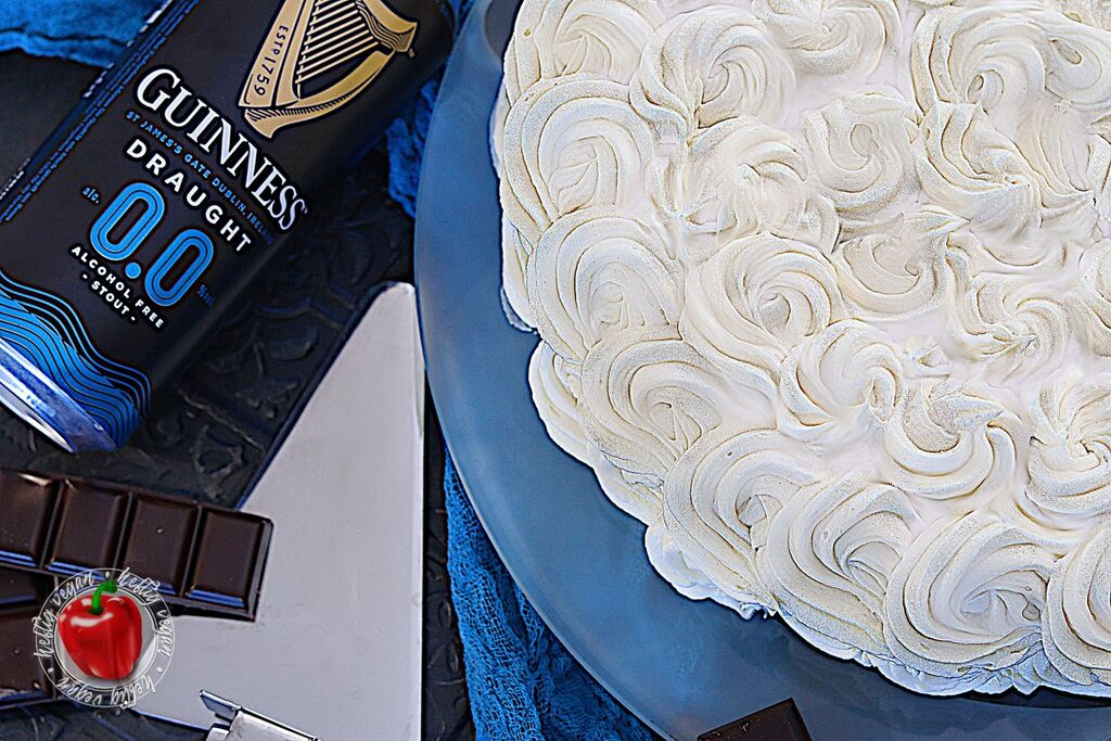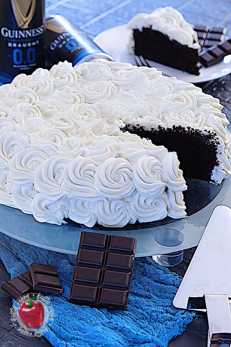 - Die Creme in eine Spritztülle geben und den kühlen Guinness-Kuchen damit verzieren. Ich empfehle von außen nach innen kleine Rosen zu spritzen.