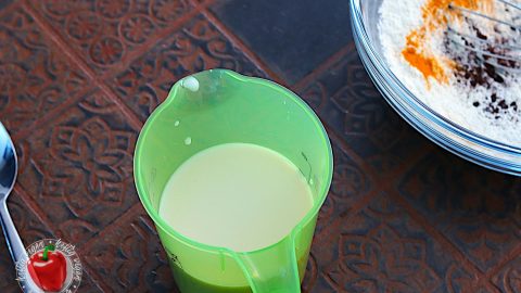 - 300 ml Pflanzenmilch (z. B. Mandelmilch¹ oder Hafermilch¹)1 TL Apfelessig¹ oder Zitronensaft1 TL Vanilleextrakt¹ oder Vanillepaste¹Die Pflanzenmilch abmessen und mit Apfelessig/Zitronensaft und Vanilleextrakt vermengen. Zur Mehlmischung hinzufügen und zu einem homogenen Teig verarbeiten.