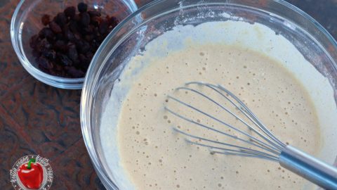 - 50 g Sultaninen oder RosinenNun die Sultaninen oder Rosinen einarbeiten.