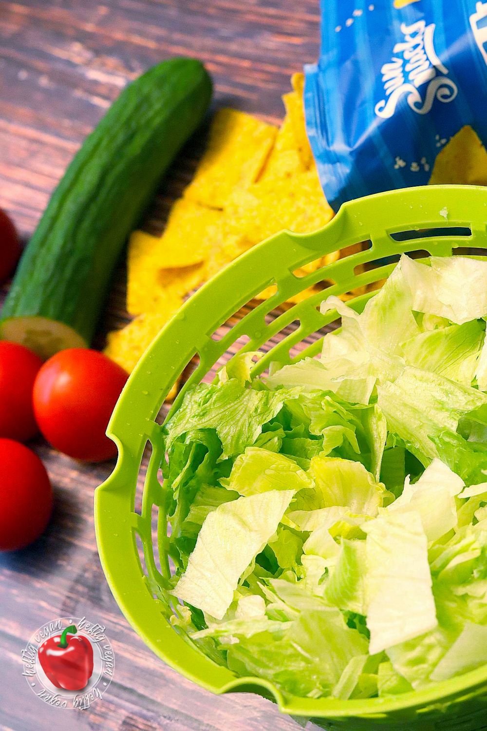 Nun die große Qual der Wahl. Die Schichten sind das Problem. Ich empfehle dir in jedem Fall Eisbergsalat als Basisschicht zu verwenden. Optional können wie oben beschrieben verschiedene Schichten hinzugefügt oder entfernt werden. Auch kannst du bei der Auswahl der Menge variieren. Magst du zum Beispiel Mais besonders gerne, wäre eine Option für dich zwei Dosen Mais zu verwenden.