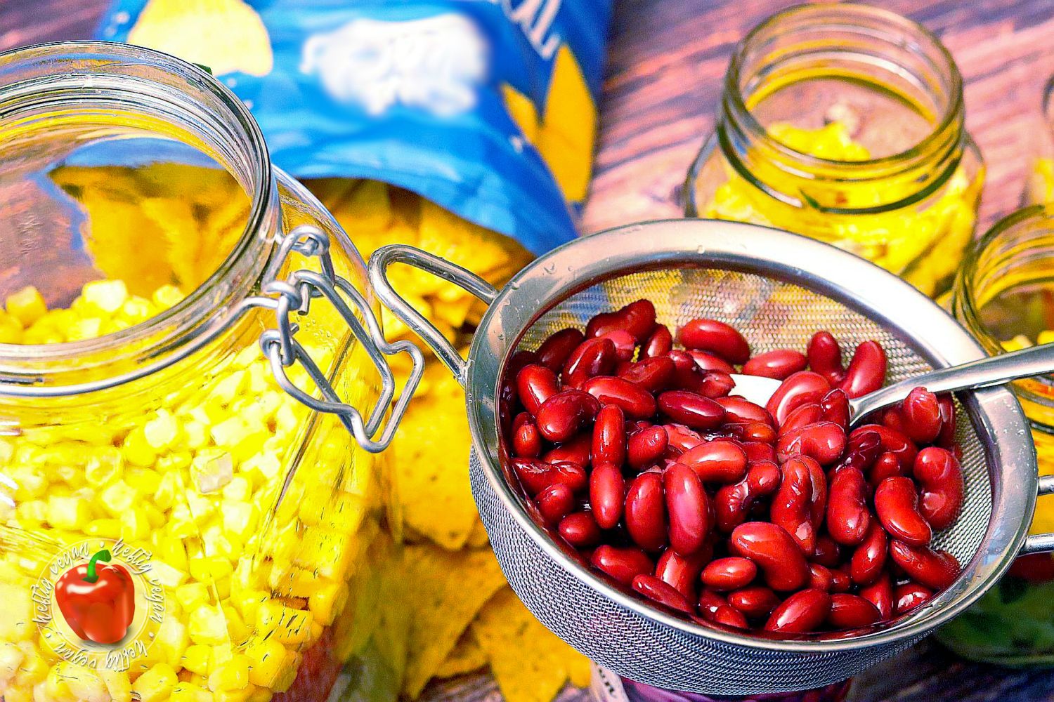 - Nun das Sojahack auf den Kidneybohnen verteilen. Salsa darüber geben und verstreichen.