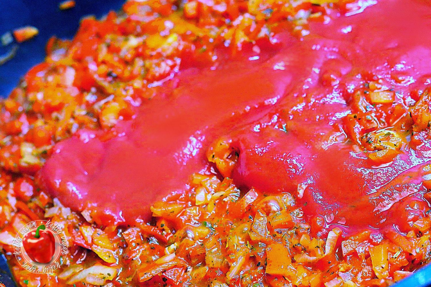 - Anschließend die passierten Tomaten hinzugeben und unterheben.